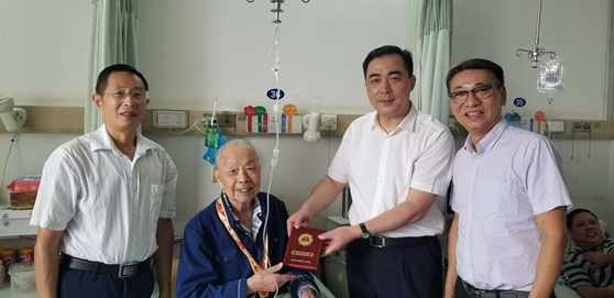 在新中國成立70周年和重陽節即將到來之際,為了傳遞組織的關懷與溫暖,9月25日、26日,資產運營集團董事長周君、總經理趙亞軍代表集團黨委及經營班子,分別對新中國成立前參加革命工作的老干部、老黨員進行了走訪慰問,對他們多年來對黨和國家革命事業、集團改革發展作出的貢獻表示感謝,為他們佩戴由黨中央、國務院、中央軍委聯合頒發的“慶祝中華人民共和國成立70周年”紀念章,并送上慰問金,向他們致以節日的問候和祝福。