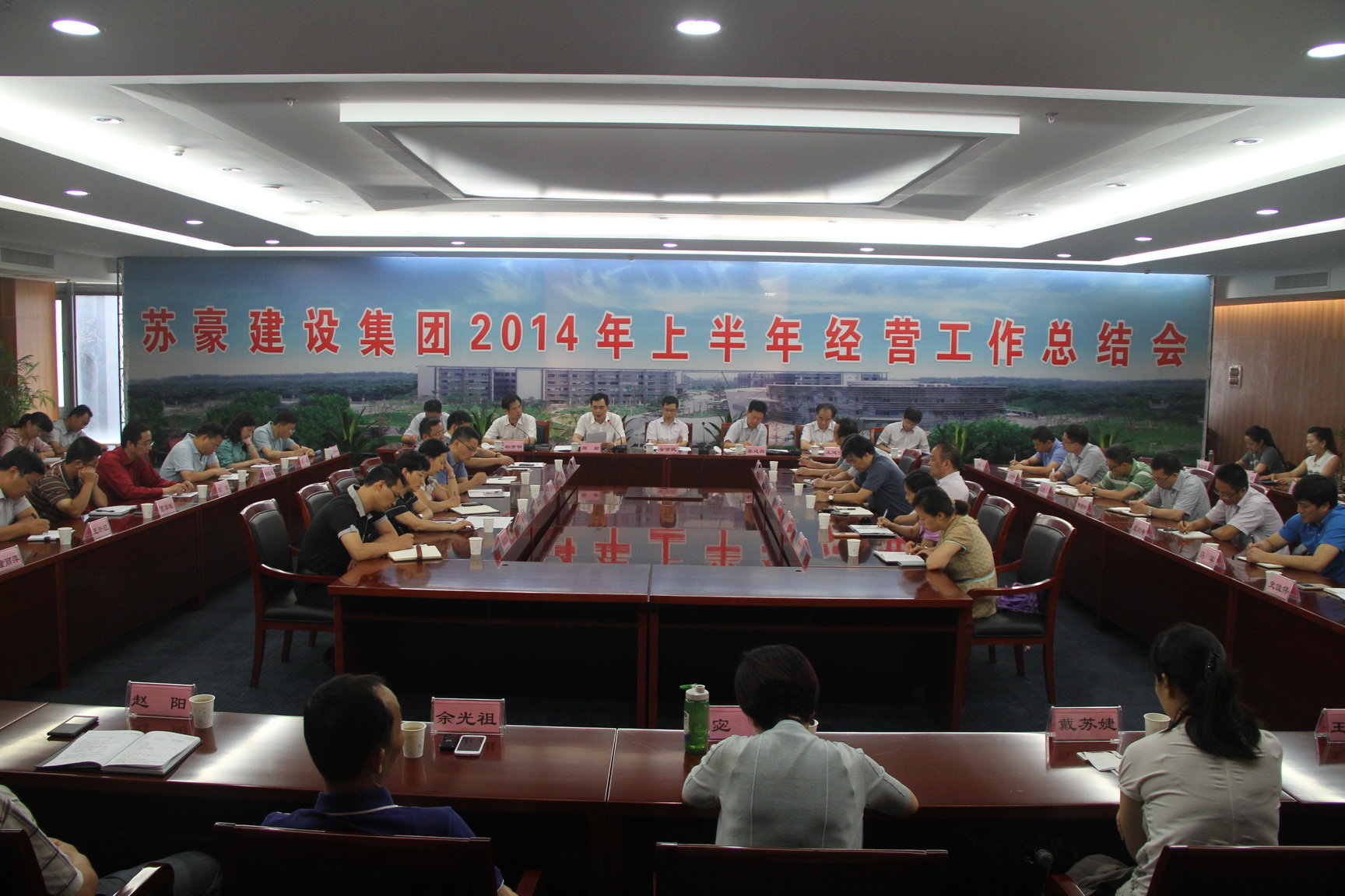 7月25日上午,蘇豪建設集團在蘇豪國際廣場A座五樓第四會議室召開2014年上半年經營工作總結會,對上半年工作進行總結和分析,并對下半年工作進行部署和安排。控股集團副總裁、建設集團黨委書記余亦民參加會議并做重要講話,建設集團本部全體員工和子公司及項目負責人參加會議。周君總經理代表集團經營班子作《堅定信心、破冰前行,確保完成年度目標任務》工作報告,吳廷昌董事長傳達了控股集團上半年經濟運行分析會議精神。