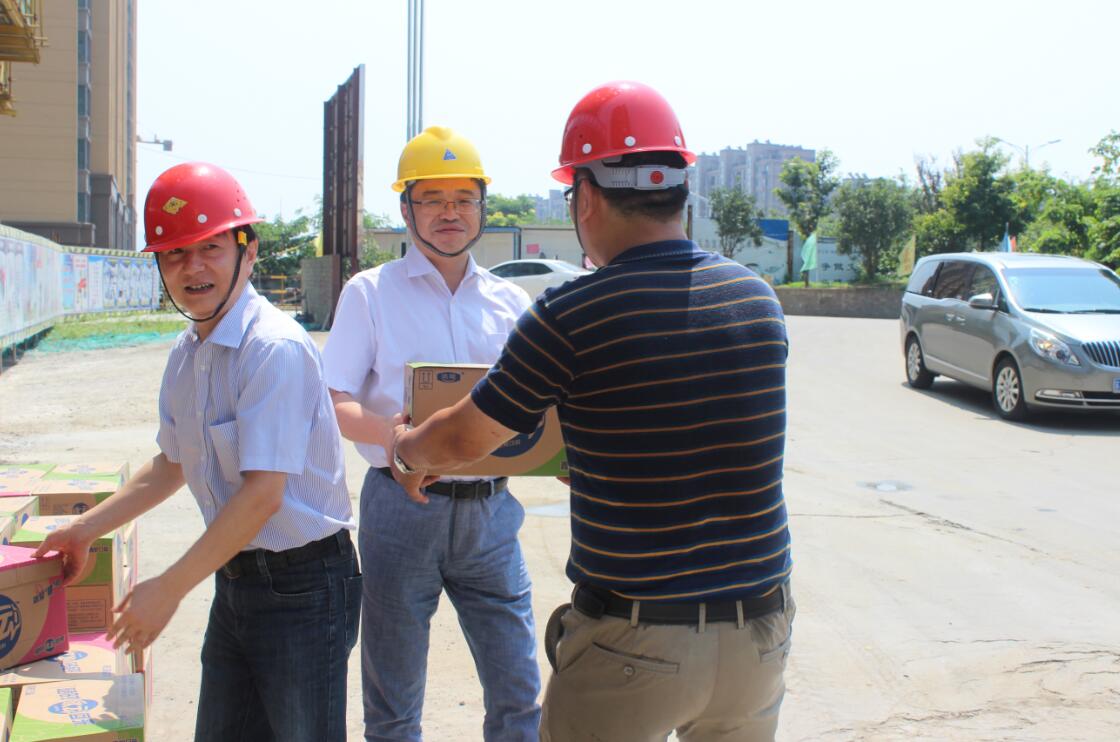 根據(jù)控股集團(tuán)上半年經(jīng)濟(jì)工作會(huì)議精神,按照建設(shè)集團(tuán)黨委的統(tǒng)一部署,7月29日上午,建設(shè)集團(tuán)董事長(zhǎng)、黨委副書記周君,總經(jīng)理、黨委副書記孫新山,副總經(jīng)理張鋼平一行赴溧水愛濤置地公司,慰問(wèn)奮戰(zhàn)在施工現(xiàn)場(chǎng)的一線職工,并發(fā)放防暑降溫飲品,為廣大職工“送清涼”。