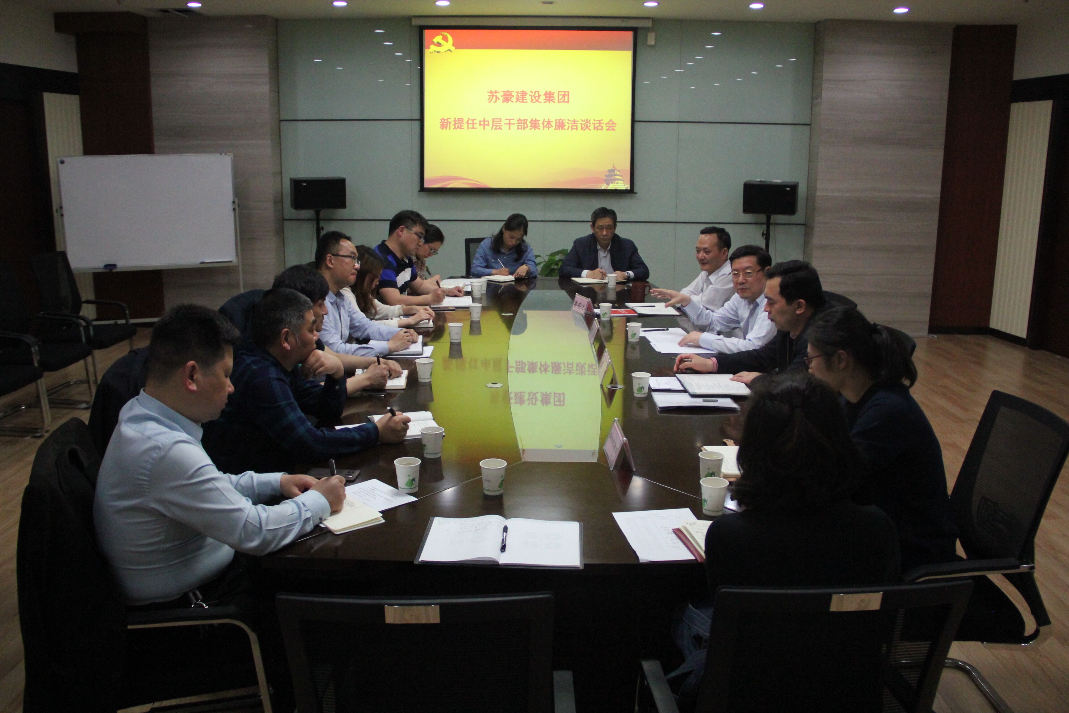 為深入推進(jìn)全面從嚴(yán)治黨,增強(qiáng)中層管理干部的廉潔從業(yè)意識,4月27日,建設(shè)集團(tuán)黨委召開新提任中層干部集體廉潔談話會。控股集團(tuán)副總裁、建設(shè)集團(tuán)黨委書記周謙同志出席會議,建設(shè)集團(tuán)黨委領(lǐng)導(dǎo)班子成員、控股集團(tuán)紀(jì)委派駐綜合紀(jì)檢組成員及11名新提任中層干部參加會議。建設(shè)集團(tuán)黨委副書記周君同志主持會議。